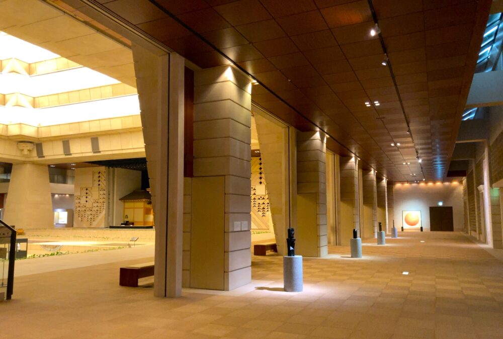 そして見逃せないのが「ピラミッドホール」。ここには可変式の能舞台があり、能や狂言といった伝統芸能の公演が行われることも。最近では有名アーティストのライブ収録にも使われていて、ジャンルを超えたイベントが楽しめます。
