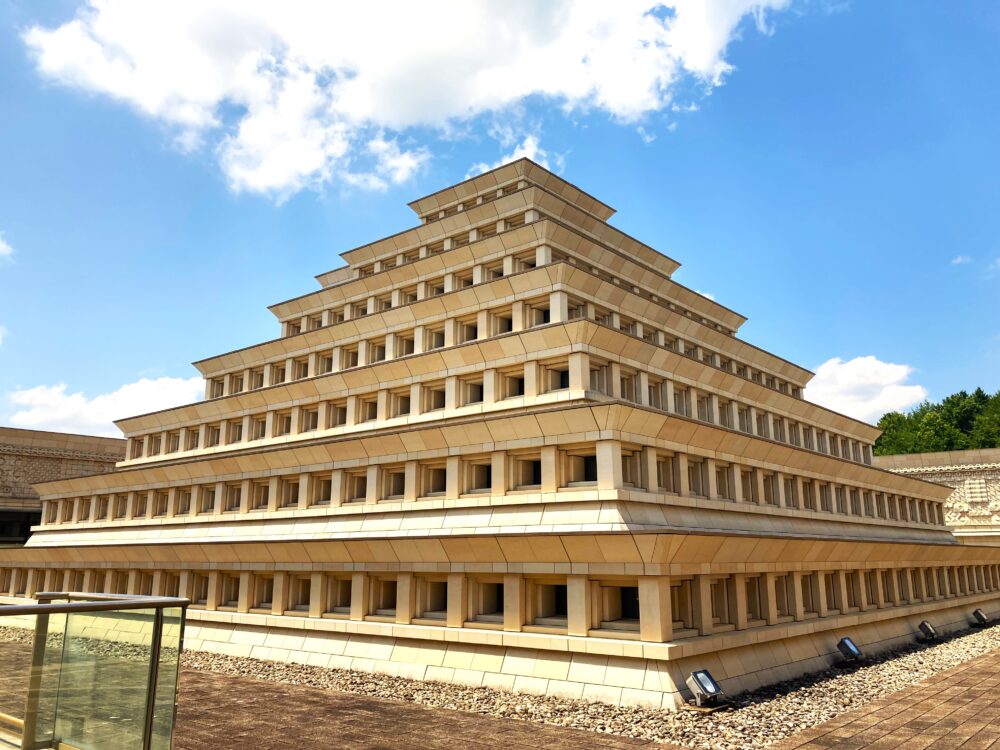 館内は地下3階・地上1階というちょっと変わった構造。外観のシンボルになっているのは、中庭にそびえるピラミッド!メキシコの世界遺産「エル・タヒン」の壁龕ピラミッドを再現していて、思わず写真を撮りたくなる迫力です。