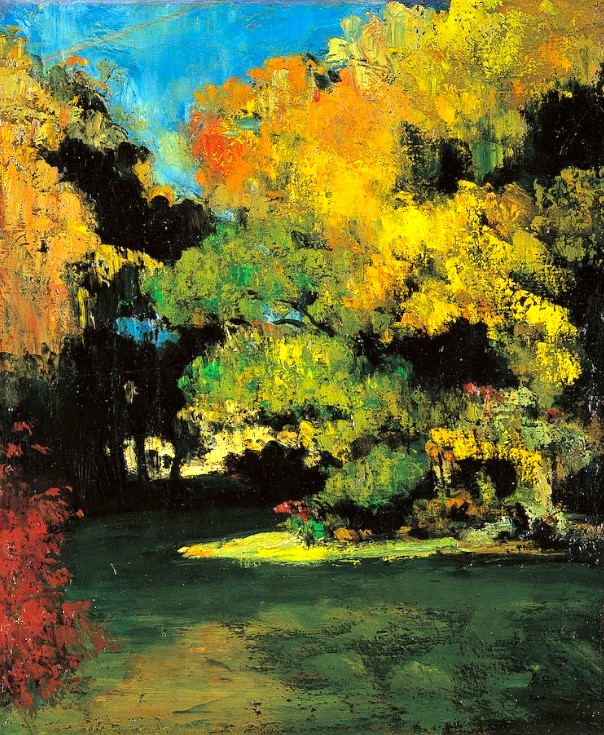 後年のセザンヌの穏やかな画風とは違い、光に照らされた森の一部が、まるでスポットライトを浴びているかのよう。