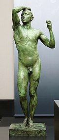 この作品の直後に発表されたのが、ロダンの名を一躍広めた《青銅時代》(1877年)。あまりにリアルな表現が「人間を型取りしたのでは?」と疑われるほど話題を呼びました。