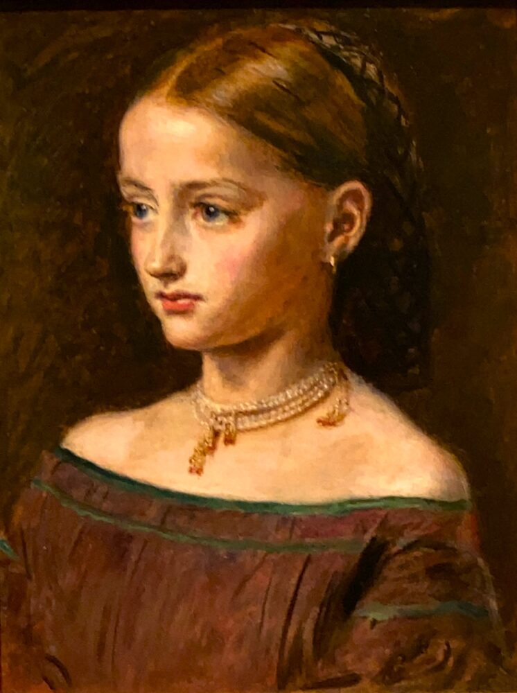 サイズは小さな作品ですが、少女のあどけなさと内面の奥行きまでを感じさせる描写は、さすがミレイ。背景には初期のような細密さは見られませんが、人物を見つめる温かなまなざしからは、画家の真摯な姿勢が伝わってきます。
