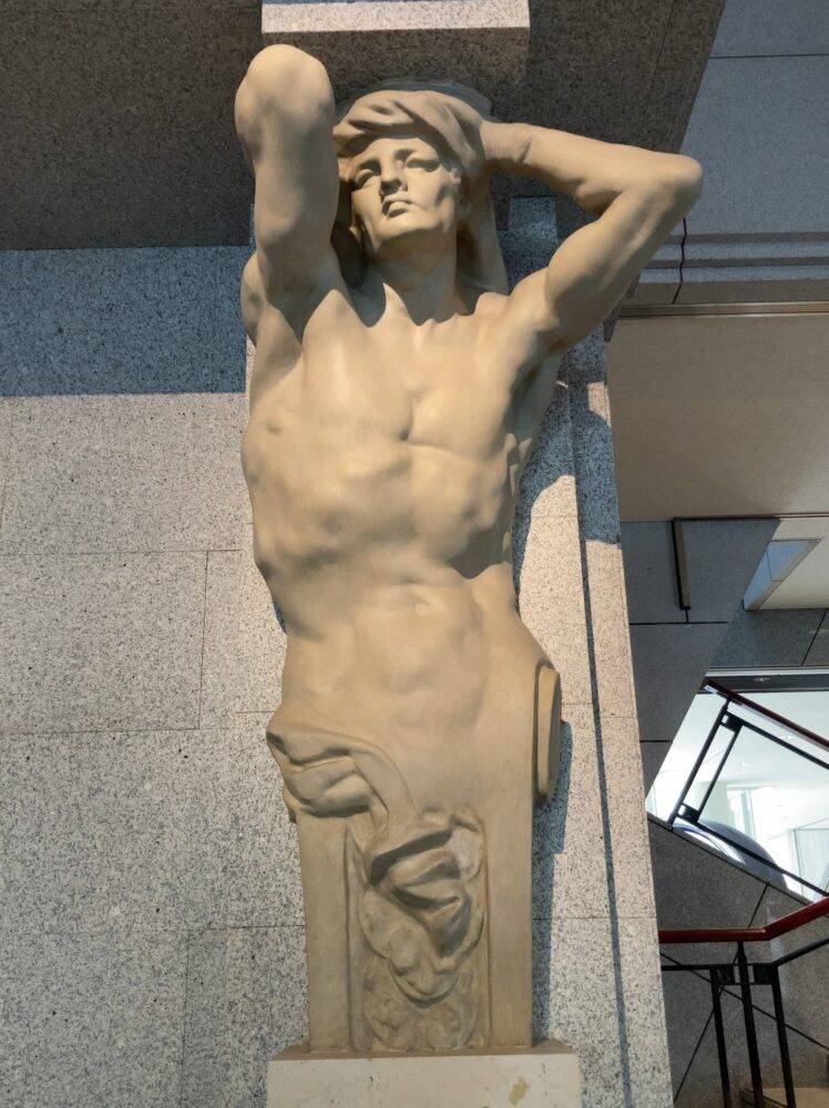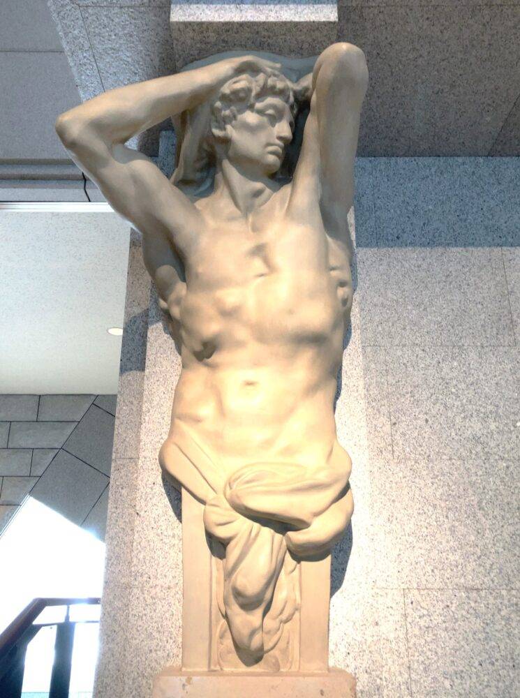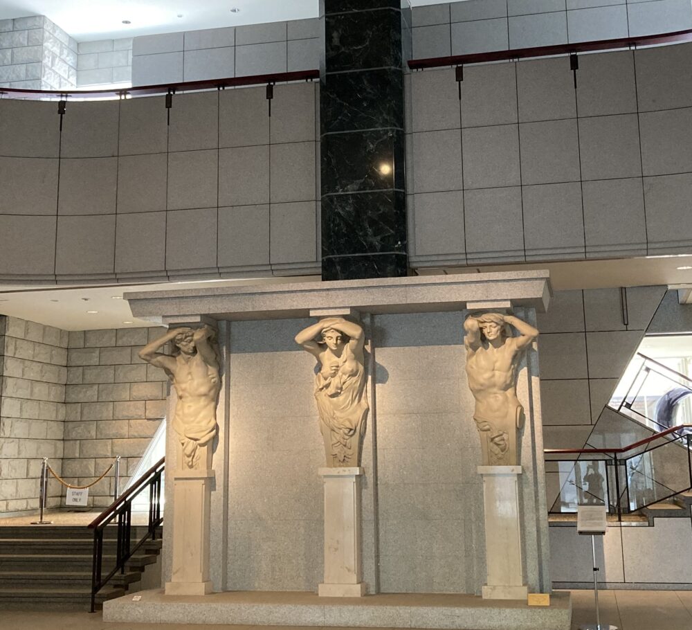 新潟県立近代美術館のエントランスに飾られる《カリアティードとアトラント》