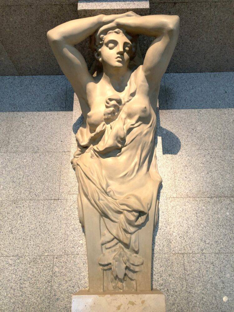 新潟県立近代美術館のエントランスに堂々と佇む《カリアティードとアトラント》。この作品はちょうど、イタリア旅行の前後に制作されたもので、ベルギー・ブリュッセル市の公共事業として依頼された装飾彫刻です。